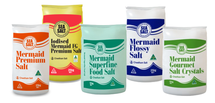 Mermaid food grade products meet the highest standard in evaporated solar salt. The Mermaid range extends from very fine cooking salt to coarse rock salt, and is a vital ingredient in many food products.