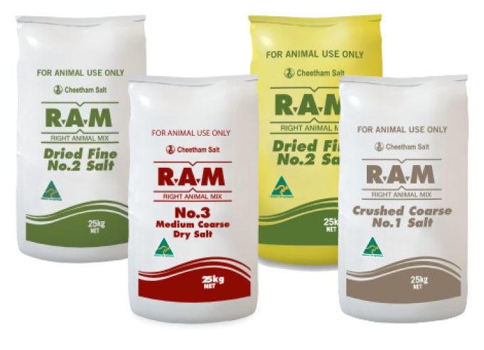 Our R.A.M (Right Animal Mix) is naturally crystallised from sea water and salt lakes. The R.A.M range contains stock and feed-grade salt, suitable for almost all animal rations.